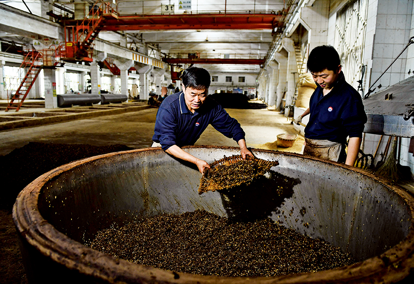 初春时节,仁怀市茅台镇连日天气晴朗,赤水河畔的枯树冒出了新芽,草木萌发出生机。从仁怀市区沿盘山路向西北驱车行驶6公里,就到了茅台酒厂制酒车间。厂房内水汽氤氲,一股粮食发酵过的醇香扑鼻而来。