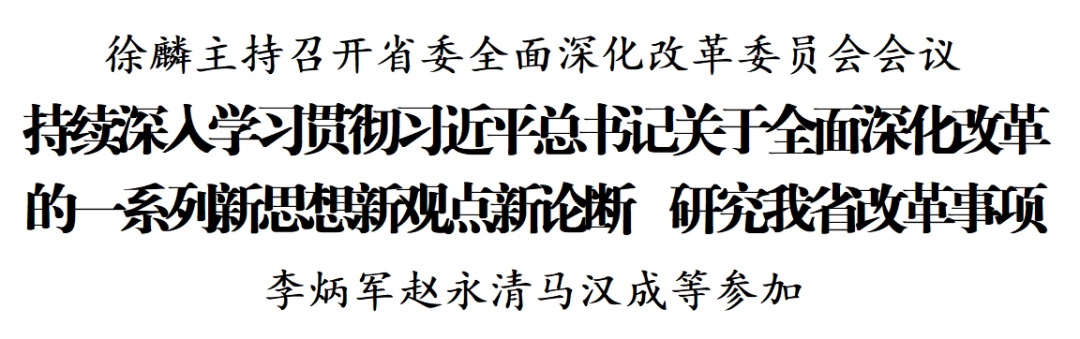 12月26日,省委书记、省委全面深化改革委员会主任徐麟主持召开省委全面深化改革委员会会议,持续深入学习贯彻习近平总书记关于全面深化改革的一系列新思想、新观点、新论断,贯彻落实党的二十届四中全会和中央经济工作会议精神,听取我省有关改革工作落实情况汇报,研究相关改革事项。