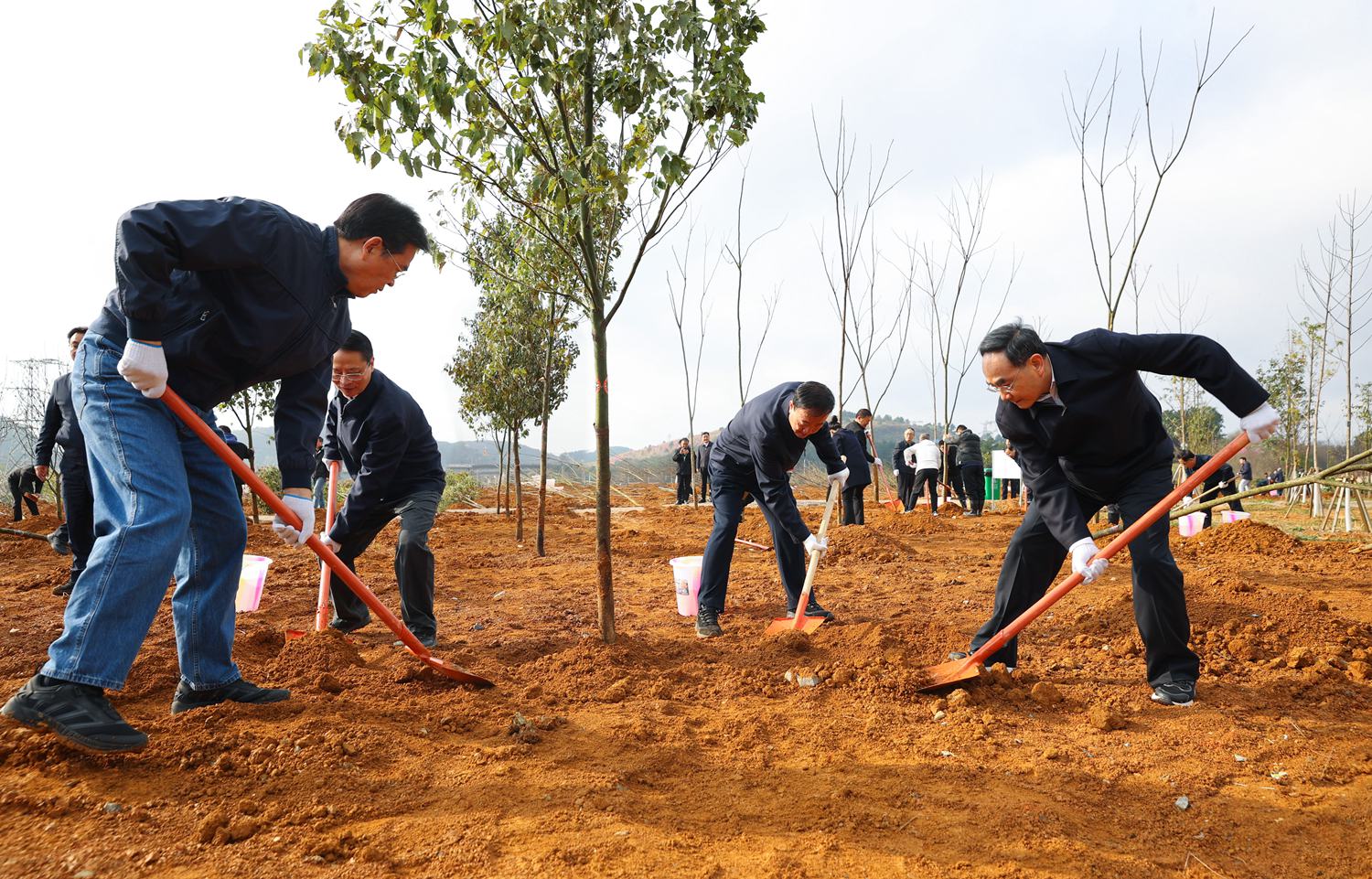 黔中大地春意盎然。在植树现场,徐麟、李炳军、赵永清、马汉成等,与大家一道扶正树苗、挥锹培土、浇水润苗,合力种下一株株栾树、香樟、红花玉兰、红花木莲、樱花、美人梅等树苗。新苗迎风挺立,生机勃勃。他们一边植树,一边询问树木特性、生长养护等情况,叮嘱坚持种植管护并重确保成活成林,不断厚植贵州“绿色家底”。他们强调,要深学笃用习近平生态文明思想和习近平总书记考察贵州重要讲话精神,大力扩绿兴绿护绿,接续做好绿水青山就是金山银山大文章,以“含绿量”提升高质量发展“含金量”,奋力在生态文明建设上出新绩,充分展现山清水秀、绿色低碳的美丽贵州新风采。