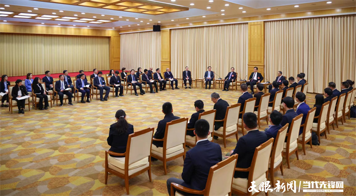徐麟指出,连日来,大家牢记使命职责,保持昂扬精神状态和优良工作作风,线上线下紧密结合、前方后方协同联动,推出了一大批高质量的新闻报道,人民领袖报道重点突出,代表委员报道亮点纷呈,开放团组活动看点十足,专题宣传报道特点鲜明,及时传递了大会精神,全面展现了代表委员履职风采,生动展示了多彩贵州新形象,有声有色、出新出彩,为大会顺利召开、为贵州代表团工作顺利开展营造了良好舆论环境。希望大家继续围绕学习宣传贯彻习近平总书记重要讲话和全国两会精神,推出更多有高度、有深度、有温度的新闻报道,响亮发出贵州牢记嘱托感恩奋进的好声音、贵州高质量发展的好声音、贵州各族人民拼搏创新的好声音、多彩贵州文化强省的好声音,激励广大干部群众奋发有为推进中国式现代化贵州实践。