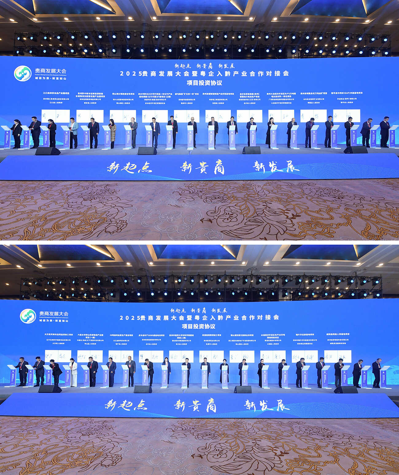 11月3日,2025贵商发展大会暨粤企入黔产业合作对接会在贵阳举行。省委书记徐麟出席。省委副书记、省长李炳军致辞。省政协主席赵永清出席。全国工商联党组成员、副主席李冰致辞。省委常委、省委统战部部长郭强主持。省领导王忠、蔡朝林、李汉宇出席。