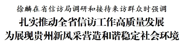 11月25日,省委书记徐麟到省信访局调研和接待来访群众。他强调,要深学笃用习近平总书记关于加强和改进人民信访工作的重要思想,深入贯彻党的二十届四中全会精神,落实省委十三届八次全会部署,坚决扛牢为民解难、为党分忧政治责任,扎实推动全省信访工作高质量发展,为展现贵州新风采营造和谐稳定社会环境。