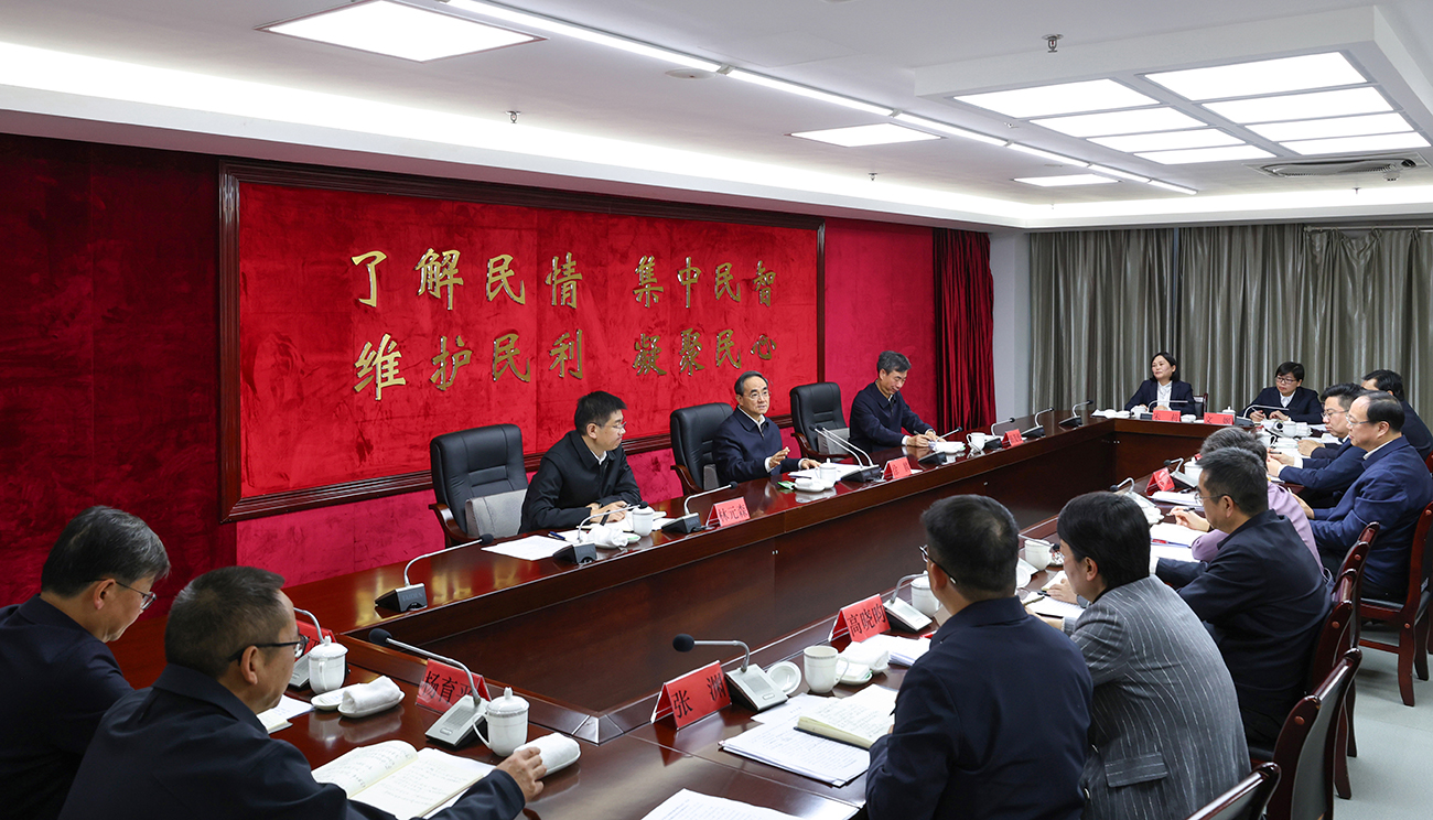 图为徐麟主持召开座谈会,听取省信访局工作情况汇报。