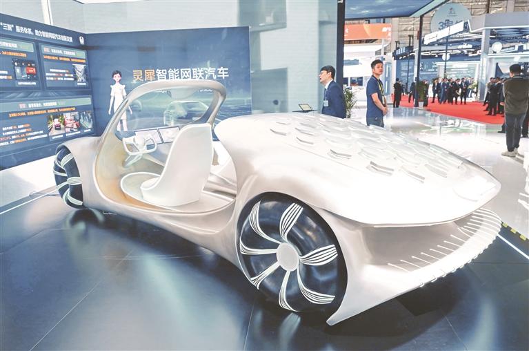 在2025年第八届数字中国建设峰会上拍摄的灵犀智能网联汽车。 新华社发