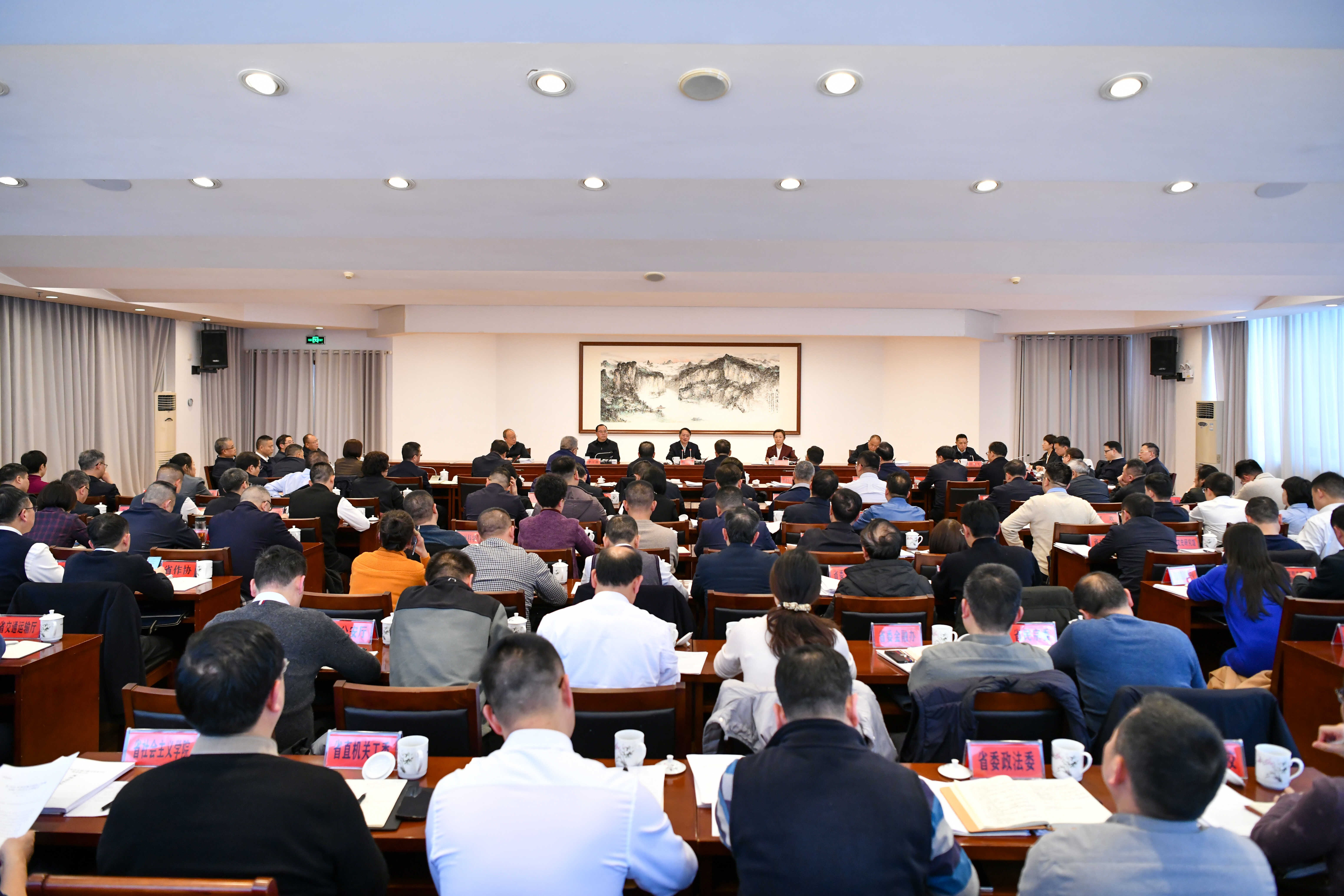 省人大常委会办公厅、省政府办公厅、省政协办公厅等20家省直单位机关党委书记作现场述职,其余单位机关党委书记作书面述职,参会人员进行现场评议。