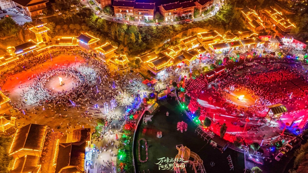 晴隆县火把节现场,游客围篝火共舞。李允凤 摄