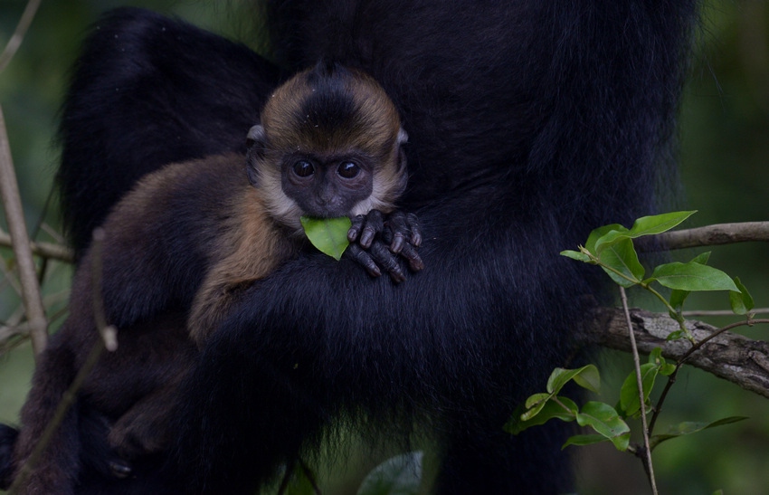 今年,保护区内的黑叶猴群增添了6只“金宝宝”。