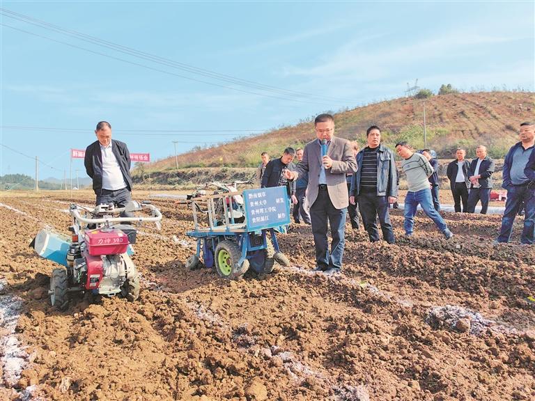 实验室团队在黔南州测试新研发的农机。