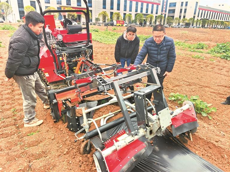 春耕时节,贵州省山地智能农机全省重点实验室内,科研团队正对一台传统起垄覆膜机进行智能化升级改造。实验室主任、贵州大学机械工程学院教授张富贵指着眼前的设备说:“这是我们正在攻坚的‘明星产品’——起垄施肥覆膜一体机,为它装上‘智慧大脑’,将来‘刷着手机种地’不再是梦。”