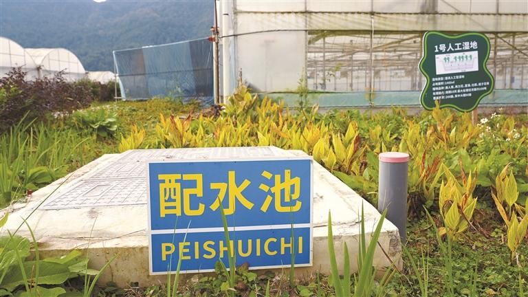 如今,在园区核心区杉木寨蔬菜基地,记者看到了一条长约500米的生态沟渠。渠底铺着碎石,渠边种着菖蒲、水芹,水流缓缓穿过,流入末端一片约两亩的生态湿地。“沟渠和湿地里的植物能吸附氮磷,让水质提升一个类别。”刘娟蹲下身,拨开一丛翠绿的水生植物,“这叫‘过程拦截’,田里排出的水,经过几道关卡,净化后再流入河。”