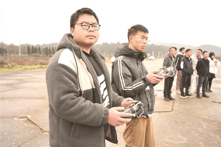 骆弟伟(左二)在操纵无人机。 贵州日报天眼新闻记者 张开学 摄